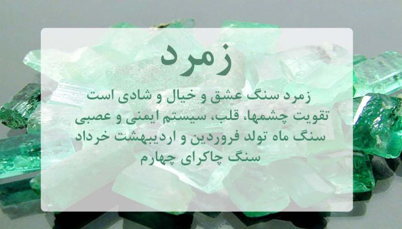 6- زمرد زمرد سنگ دیگری هست که با عشق و دوست داشتن در ارتباط ميباشد .اين سنگ معمولا به تام سنگ عشق نافرجام معروف هست .اين سنگ باعث افزایش تمرکز و پاک کردن انرژي هاي منفي و تشوبق وفاداري میشود و سنگ متولدين ماه هاي فروردين و ارديبهشت و خرداد ميباشد